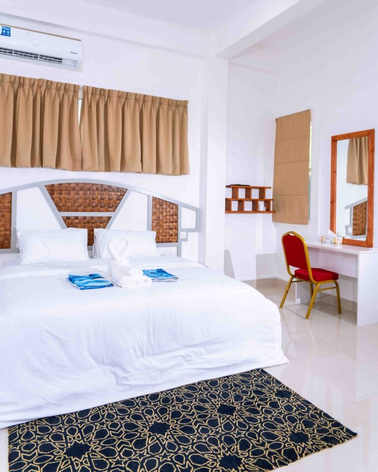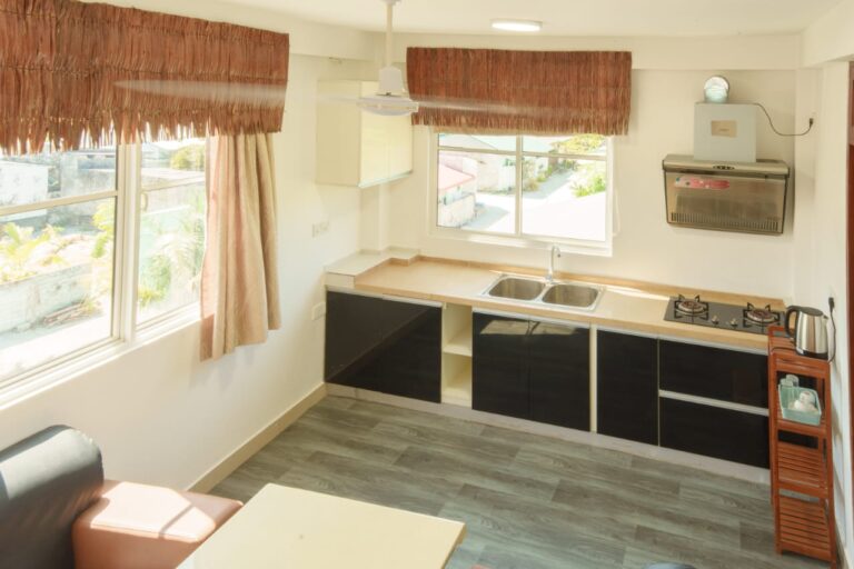 The Guest House is located by the beach, less than 2 minute to white sandy beach and crystal clear lagoon. The Island boast a beautiful lagoon ideal for swimming and snorkeling for fun family adventure.